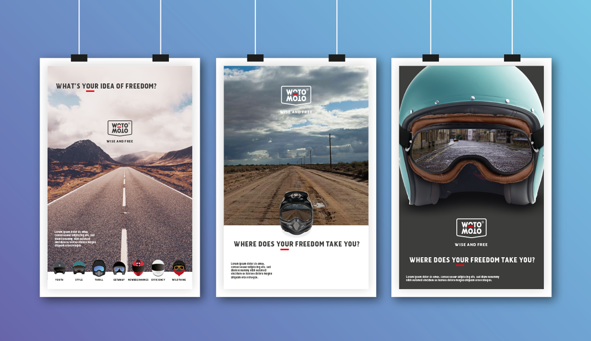 WOTOMOTO have chosen WAVA™ as their creative & digital agency to handle the brand’s marketing presence. The main aim of this marketing campaign was to place WotoMoto at the forefront of people’s mind when choosing to buy a Motorcycle, e-bike or a helmet. We though it would be best to divide the WOTOMOTO campaign in groups, taking the helmet as the mascot of each. This helps promote safety and gives the client a direct point of view of his own desired freedom.